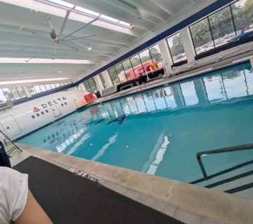 デルタ航空会社内からの景色 訓練用のプール
