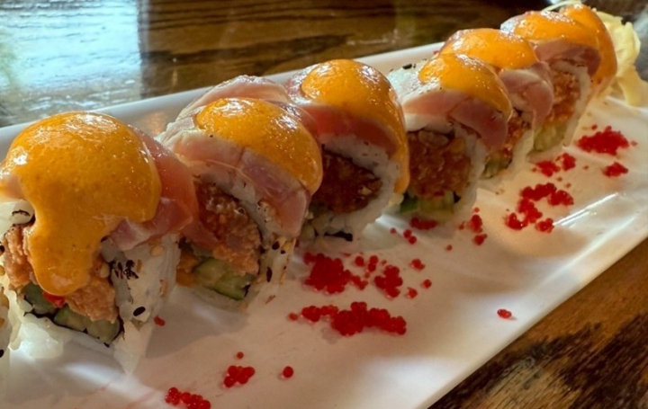 訪問団のメンバーと観光をした際、昼食にpeach cobbler chicken wafflesというものを食べました。ワッフルにチキンとピーチが挟まり、メープルシロップをかけた組み合わせは、アメリカならではの味でとてもおいしかったです。また、ホストファミリーと行った日本料理店では、アメリカのお寿司を食べました。スパイシーなソースがかかっていたり、見た目が華やかであったりして日本とは違う良さがありました。