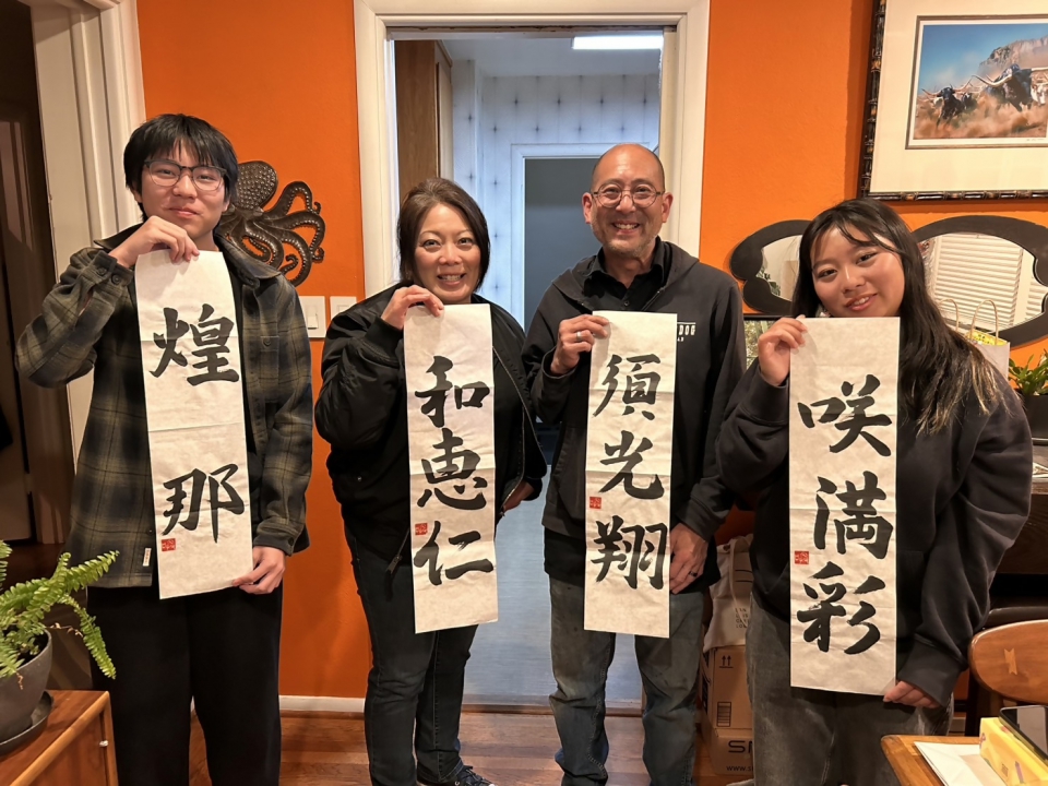 (初日にホストファミリーの名前を漢字で書いてプレゼントしました)