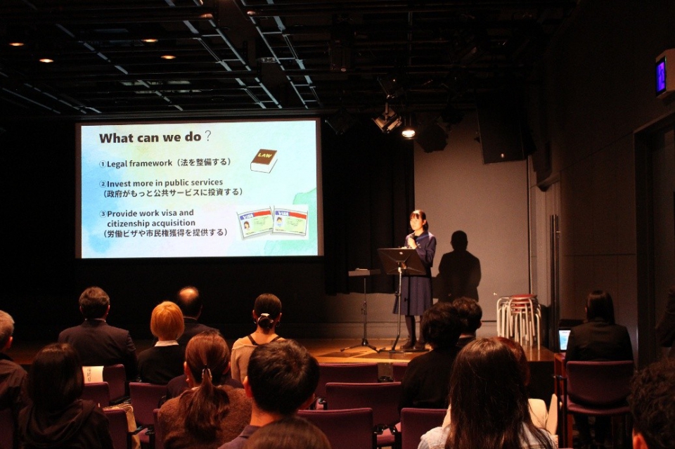 「英語を学ぶ必要性」については、「外国語を学ぶという行為そのものが相手を理解しようとする姿勢である」、という報告もありました。さらに、国際社会を取り巻く社会課題への改善案も提案されました。