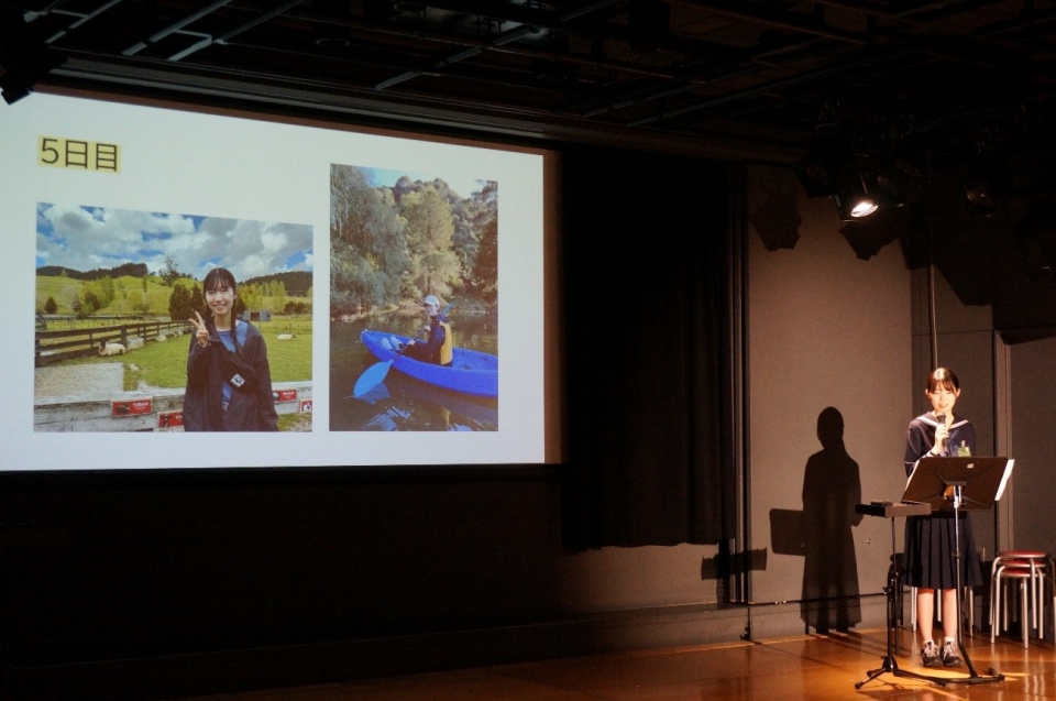 ニュージーランド・オークランド市への派遣者が、1人での現地訪問について、ホームステイ、学校体験や素敵な出会いなどの報告を行いました。