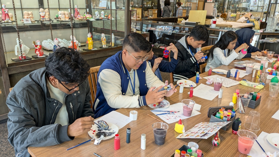 博多人形会館松月堂で、博多人形の絵付け体験をしました。